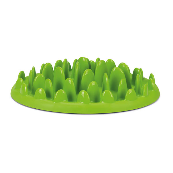 - Usporavanje hranjenja: Pomaže u smanjenju rizika od brzog gutanja hrane i nadutosti, što je posebno korisno za pse sklone ovim problemima.