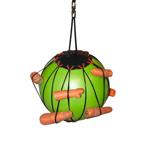 Terapijska lopta za konje idealna je za zabavu i stimulaciju vašeg konja. Ova lopta omogućuje stavljanje poslastica u otvore oko lopte, čime potiče konja na igru i aktivnost. Pogodna je za upotrebu u staji i na otvorenom, zahvaljujući jednostavnoj montaži i otpornom materijalu koji može podnijeti ugrize.