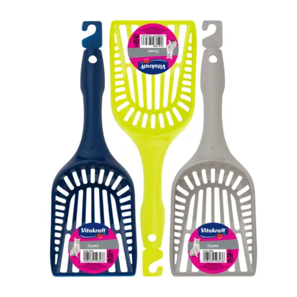 Vitakraft lopatica za posip izrađena je od kvalitetne i izdržljive plastike, idealna za jednostavno uklanjanje iskorištenog pijeska. Zahvaljujući prorezima kroz koje prolazi čist pijesak, lopatica učinkovito odvaja nakupine onečišćenog i nepotrebnog pijeska. Ručka ima praktičnu rupicu – idealnu za vješanje i brzo odlaganje. Redovito korištenje pomaže održati higijenu i Suzbijanje neugodnih mirisa u WC-u mačke.